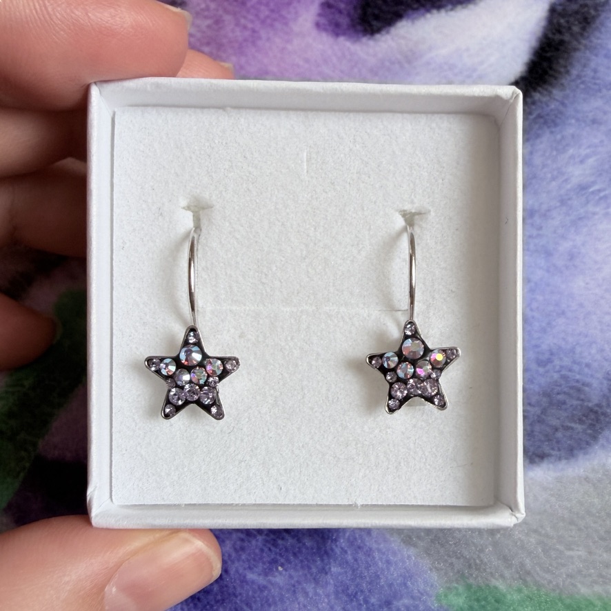 Náušnice ve tvaru hvězdičky s jedním broušeným kamínkem, který krásně odráží světlo.