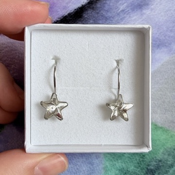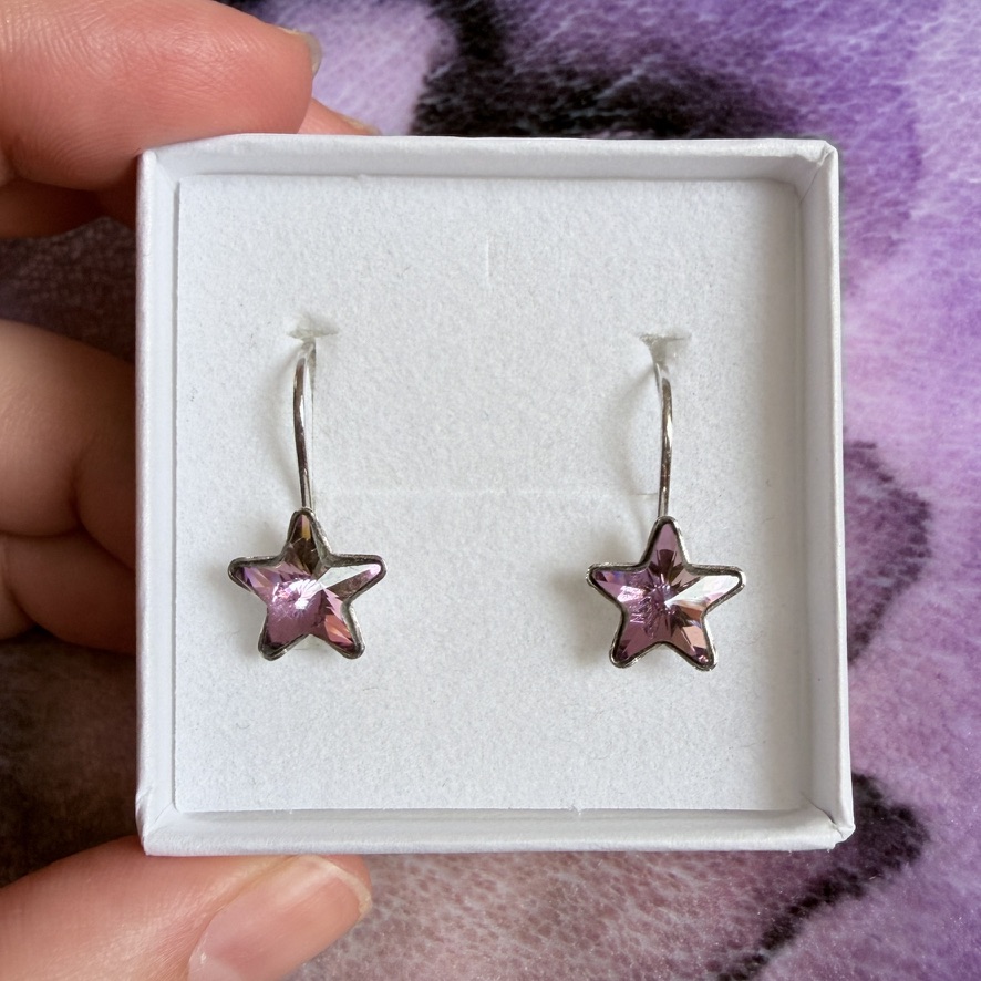 Náušnice ve tvaru hvězdičky s jedním broušeným kamínkem, který krásně odráží světlo.