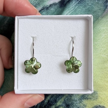 Náušnice ve tvaru květiny s jedním broušeným kamínkem, který krásně odráží světlo.