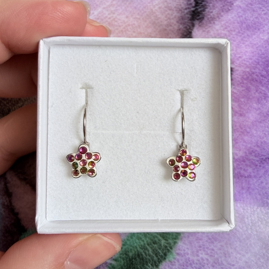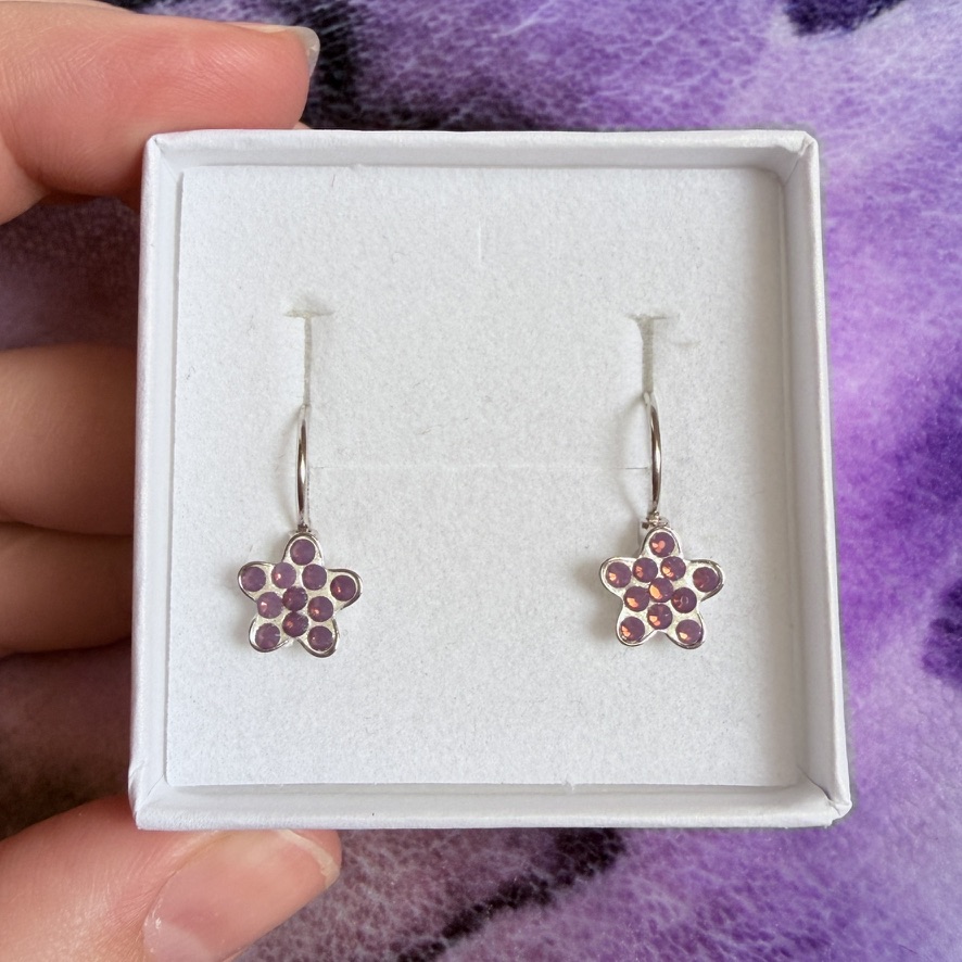 Roztomilé náušnice ve tvaru hvězdičky s matnými fialovými kamínky.