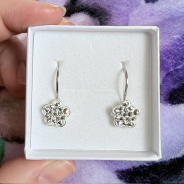 Náušnice ve tvaru květiny s jedním broušeným kamínkem, který krásně odráží světlo.